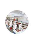 環(huán)境衛(wèi)生控制:采用班前、班中、班后清洗消毒制度。公司擁有進口泡沫清洗系統(tǒng),對設(shè)備、設(shè)施、工器具進行雙重清洗消毒;班后采用大型臭氧機,對生產(chǎn)環(huán)境空氣進行物理消毒,每天由化驗室根據(jù)檢驗計劃進行檢測,確保環(huán)境衛(wèi)生合格。