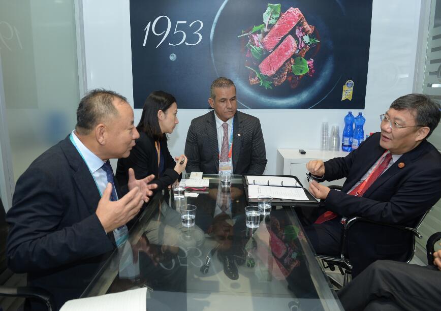 11月7日上午,陳希濱董事長陪同黑龍江省省長王文濤、副省長程志明,與參加進博會的全球500強企業(yè)巴西JBS集團CEO雷納托·科斯塔舉行了會談。會談中,王文濤省長表示黑龍江省政府將積極推動JBS與黑龍江企業(yè)開展合作,推動龍江畜牧業(yè)及肉制品加工業(yè)更好發(fā)展,實現(xiàn)互利共贏。